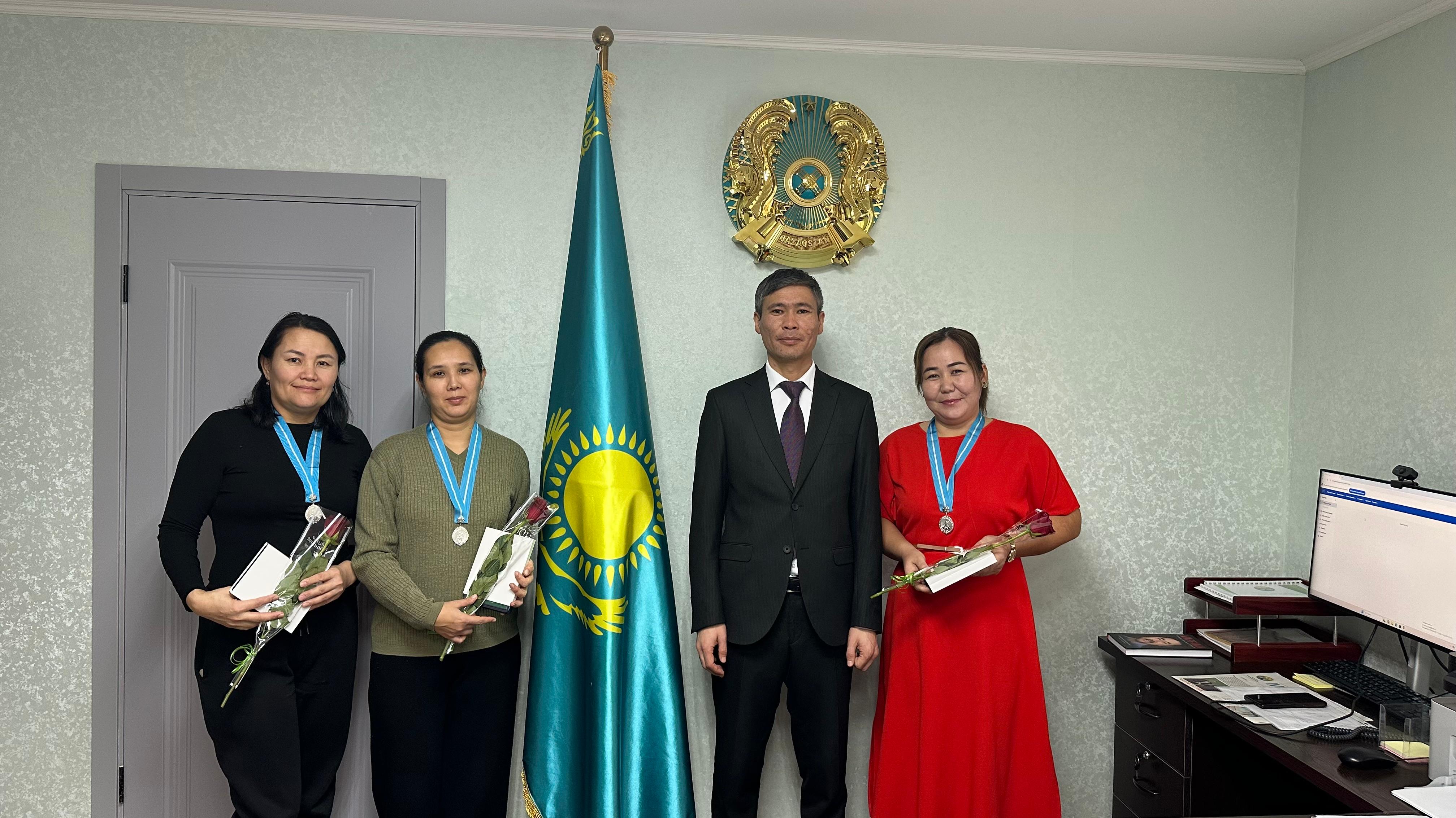 Аким села Баянды Кадырбек Кудабаевич наградил многодетных матерей государственной наградой «Күміс алқа".