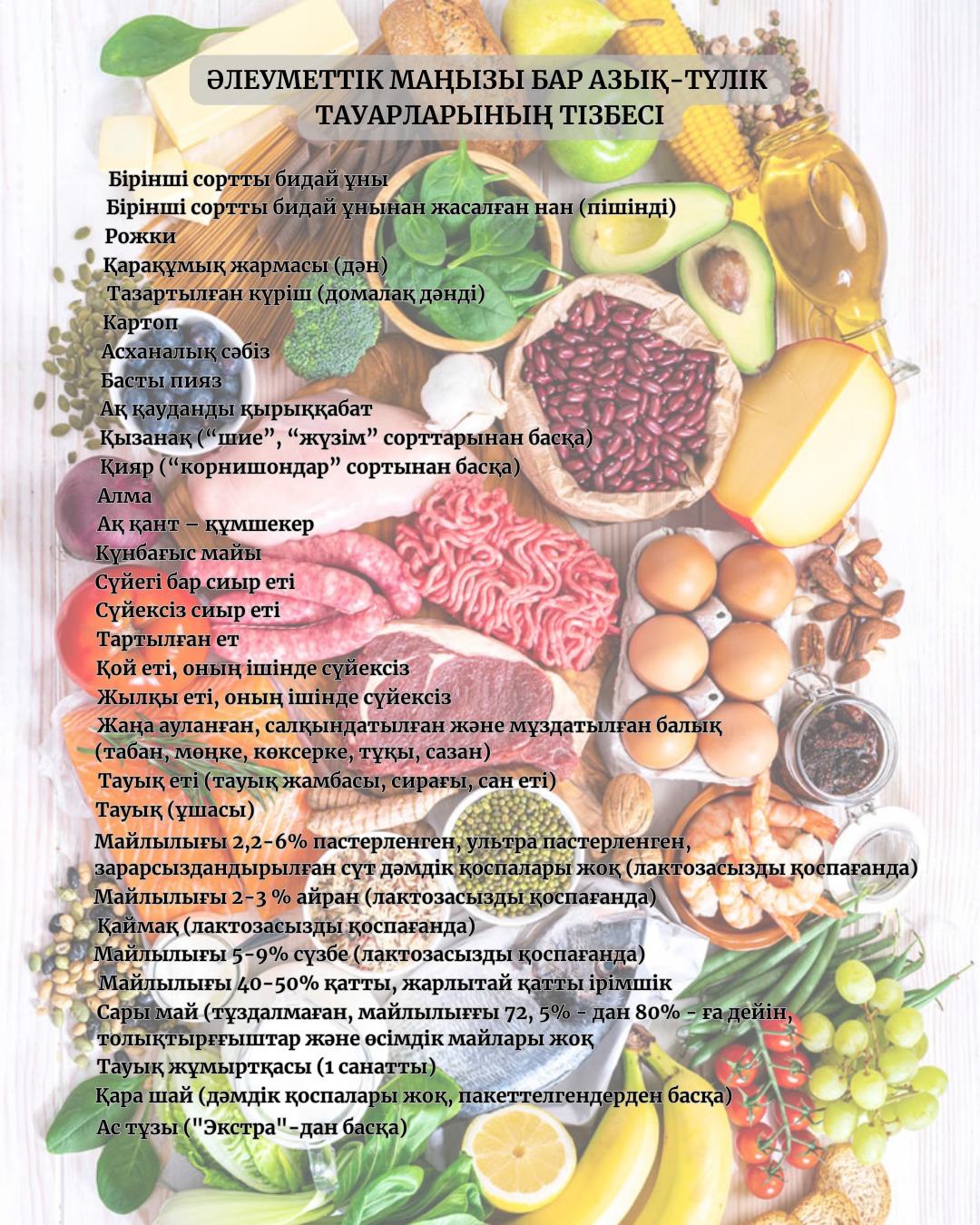 ӘЛЕУМЕТТІК МАҢЫЗЫ БАР АЗЫҚ-ТҮЛІК ТАУАРЛАРЫНЫҢ ТІЗБЕСІ ЖАҢАРТЫЛДЫ