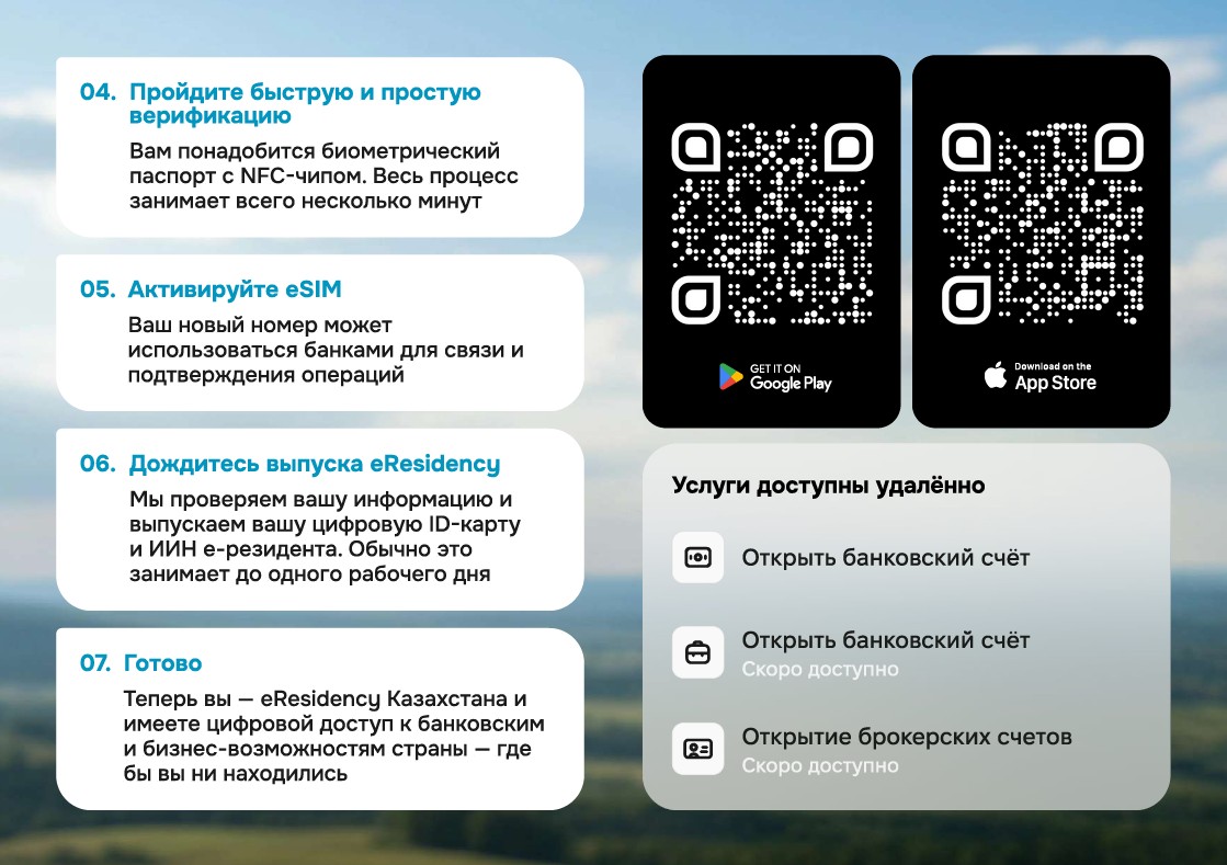 - получение статуса электронного резидента Республики Казахстан (e-Residency);