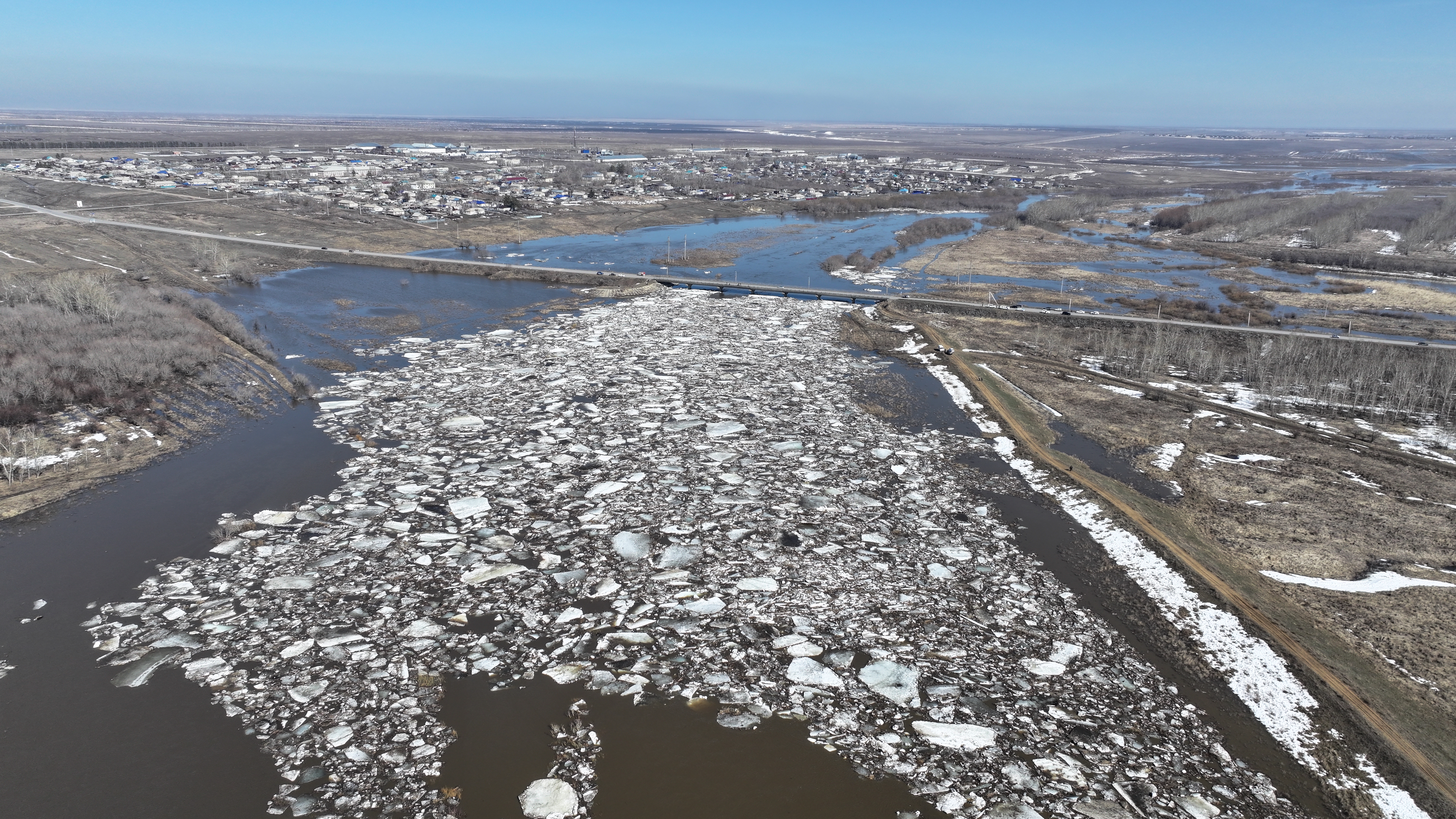 В районе Беимбета Майлина на реке Айет наблюдались два ледовых затора: первый — в селе Айет, второй — в селе Майское.