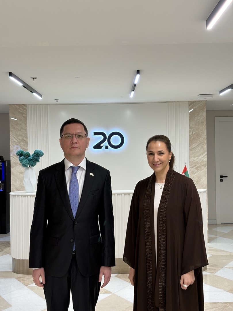 Абу-Даби, 1 апреля 2026 года – Посол Республики Казахстан в Объединенных Арабских Эмиратах Рауан Жумабек провел встречу с Главой офиса международных отношений Аппарата Президента ОАЭ Марьям бинт Мухаммед Саид Хареб Аль-Мхейри.