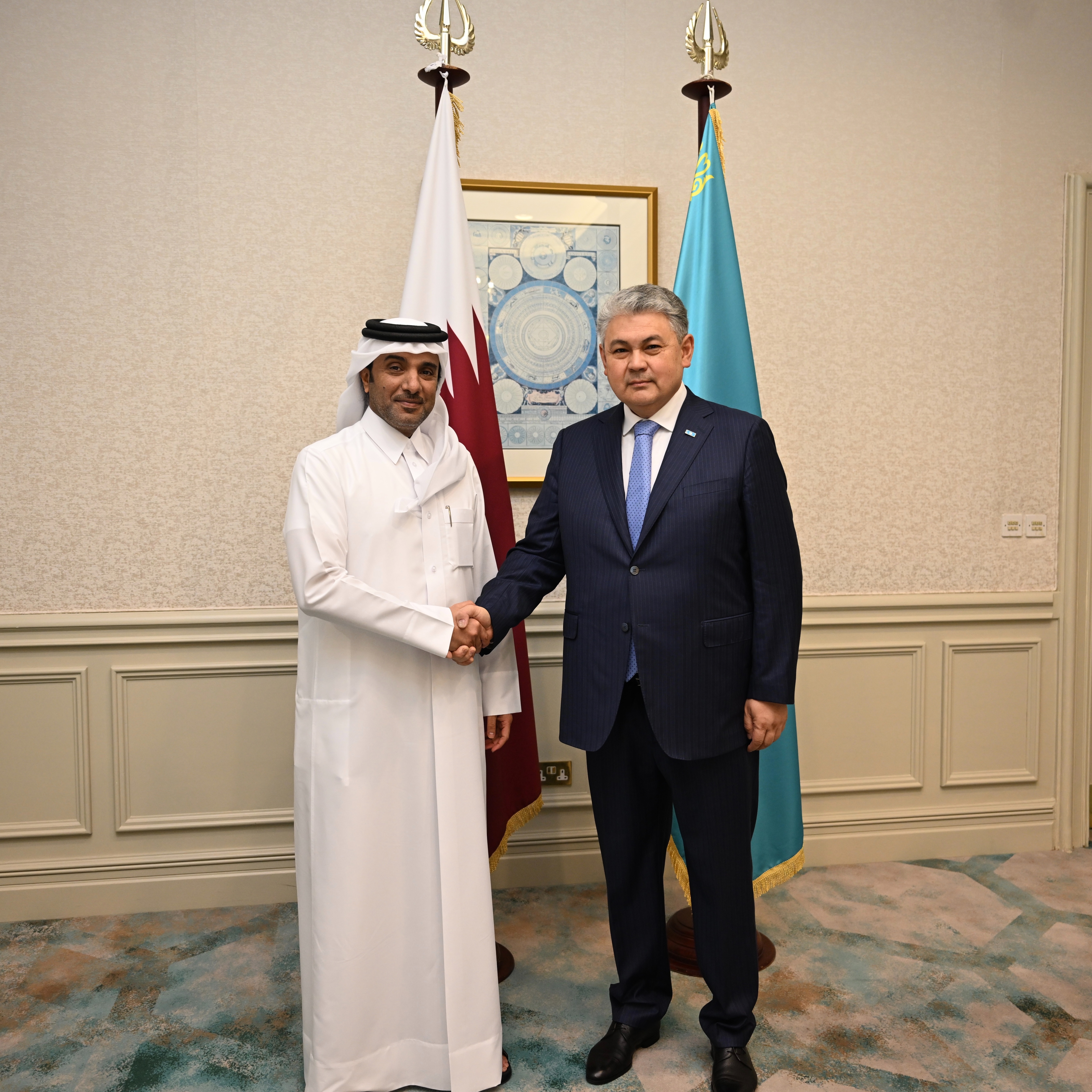 26.04.2026 18:24:16 158Доха, 26 апреля 2026 года – В рамках визита в Государство Катар Министр иностранных дел Республики Казахстан Ермек Кошербаев провёл встречи с руководством катарских компаний «Power International Holding» и «Milaha.»
