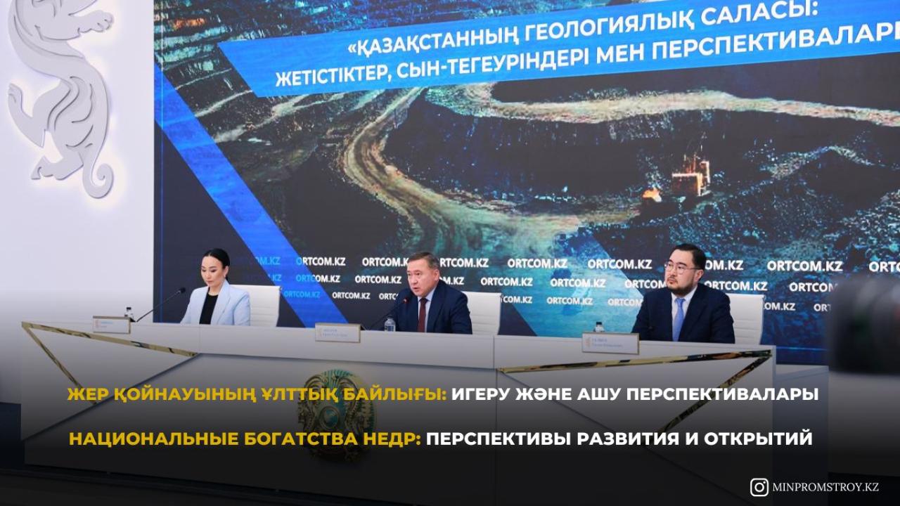 Сегодня Председатель Комитета геологии Министерства промышленности и строительства РК Ерлан Акбаров выступил с докладом на брифинге в Службе центральных коммуникаций при Президенте РК. В брифинге также принял участие Председатель Правления АО «Национальная геологическая служба» Ерлан Галиев